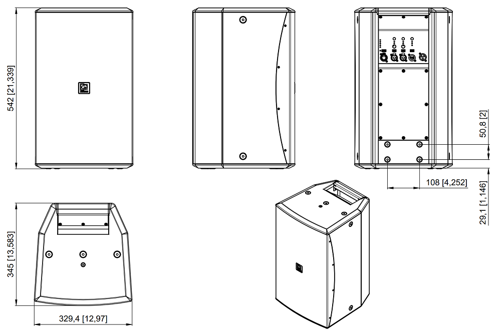 Оборудована двумя драйверами: 1” ВЧ твиттер и 10” НЧ вуфер, которые работают в широком диапазоне частот 65 Гц - 20 кГц и способны выдавать в обычном режиме работы звук высокой мощности 300 Вт (1200 Вт в пике) при подключении к низкоомному усилителю (8 Ом).
