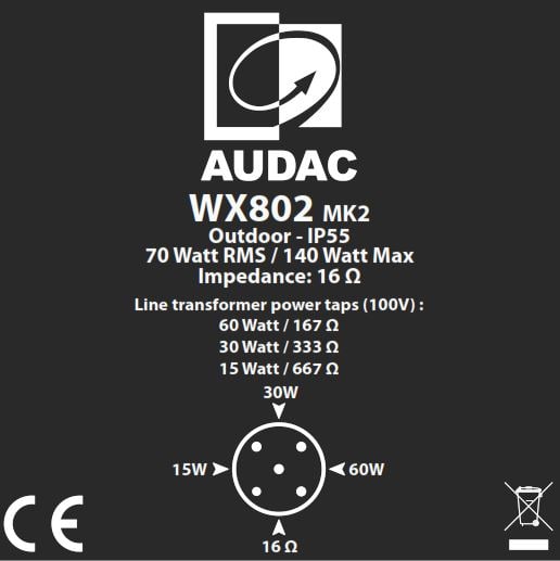 Также для заказа доступна модификация для установки внутри помещений, которая имеет маркировку AUDAC WX802MK2.