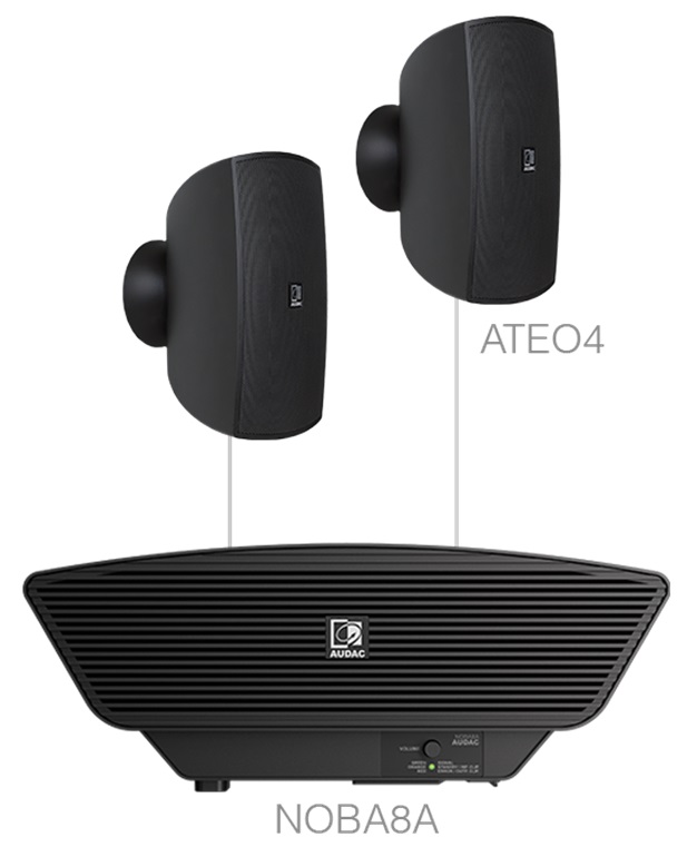 AUDAC SONA4.3 – звуковой комплект с отличным качеством звучания и дизайнерским оформлением, состоящий из активного сабвуфера NOBA8A и 2 настенных акустических систем ATEO4MK2. Он обладает выходной мощностью в 170 Вт и предполагает возможность дистанционного управления с опционального пульта ДУ, что делает комплект прекрасным решением для качественного звукового оформления магазинов и бутиков, кафе и ресторанов, гостиниц и отелей, салонов красоты, офисов, учебных заведений и других объектов площадью до 50 м².