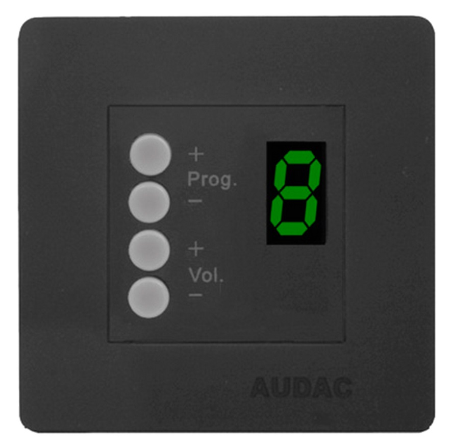 AUDAC DW3020 – встраиваемая настенная панель удаленного управления матричными аудио коммутаторами AUDAC M2 и R2, позволяющая выполнять выбор канала вещания и настройку необходимого уровня громкости непосредственно из зоны трансляции. Панель имеет небольшие размеры и устанавливается врезным способом в стену с применением стандартных пластиковых рамок 45х45 мм производства AUDAC (CF45S, CF45D), Legrand, Niko и др. Подключение к основному оборудованию выполняется кабелем UTP CAT6 и выше через стандартный 4-конт. клеммный терминал (инт. RS-485). При этом максимальная длина линии связи зависит от количества подключенных к ней панелей и не должна превышать 600/500/400/300/200/150/120/100 м при 1/2/3/4/5/6/7/8 панелях соответственно. Черный цвет корпуса (RAL9005).