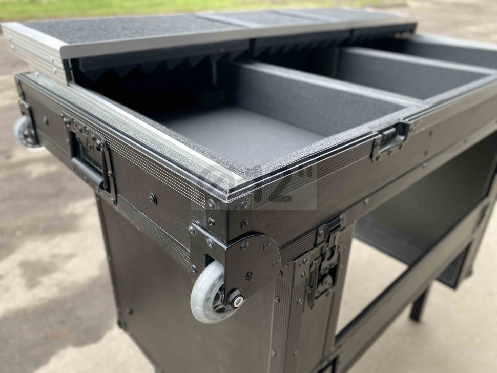 Совместимые приборы: два (2) проигрывателя Pioneer CDJ-3000NXS2 и один (1) четырехканальный DJ-микшер Pioneer DJM-900NXS2. Есть большая выдвижная полка, куда можно поместить ноутбук.