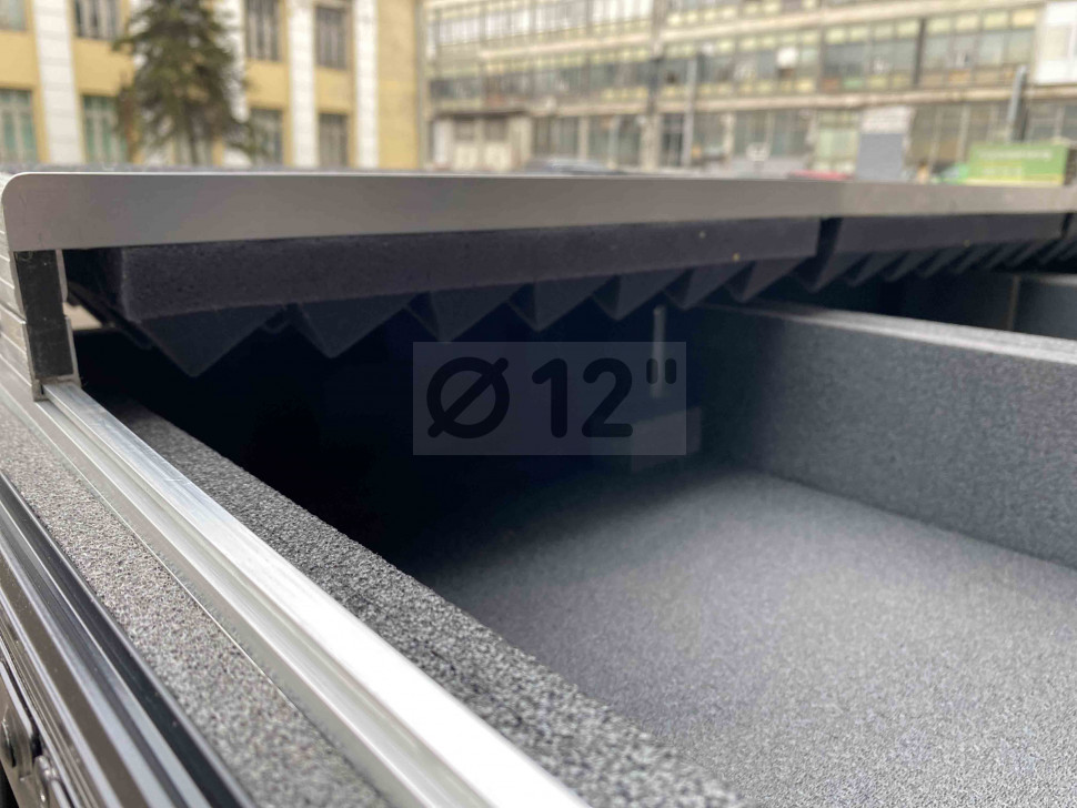 Раскладывается быстро и удобно: верхняя часть, которая в собранном состоянии является крышкой кейса, одним движением руки превращается в подставку ("ноги"), на которую устанавливается нижняя часть, где в собранном состоянии хранится оборудование. Собранным удобно переносить пользуясь ручкой или встроенными колёсиками.
