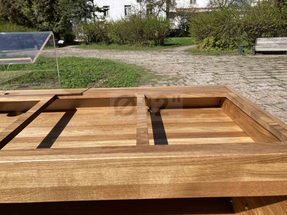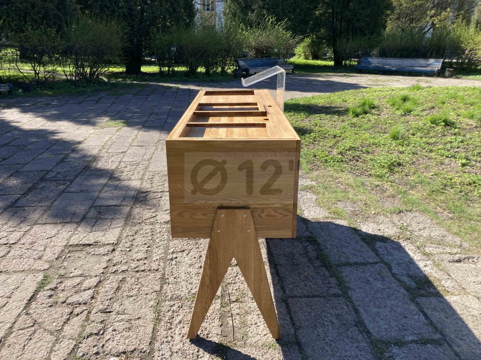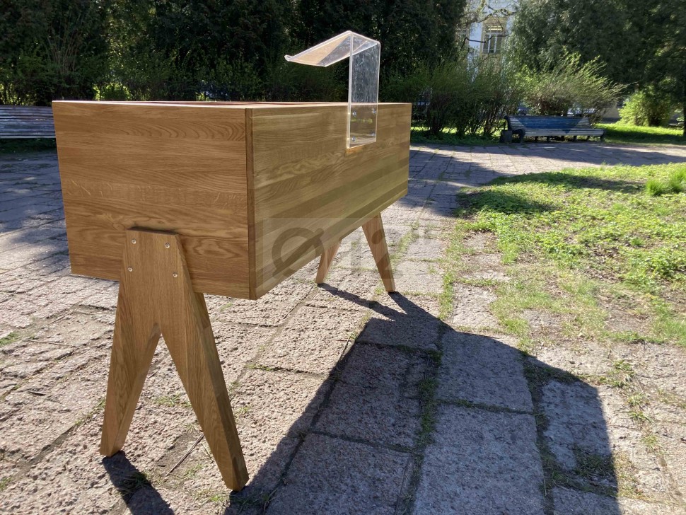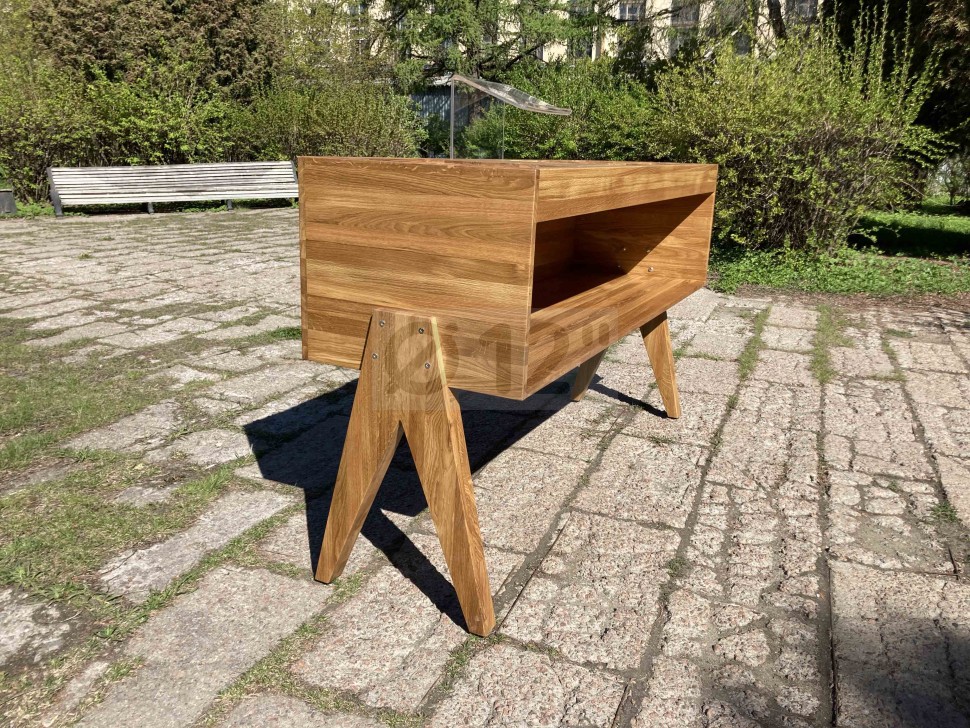 Материал дубовый цельноламельный щит, габаритные размеры 1900*600*1070 мм, вес 40 кг. Оригинальный современный дизайн, отечественное производство, высокая прочность конструкции. Цвет "натуральный".