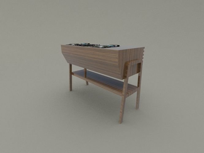 Позволяет легко разместить два (2) проигрывателя фирмы Technics и один (1) микшер в позиции scratch. Для удобства коммутации в столешнице есть отверстие для кабелей и встроенный сетевой адаптер содержащий пять (5) розеток 220В.