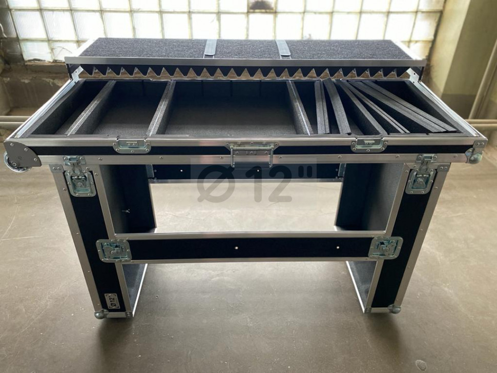 Складной мобильный кейс-стол диджея 12" Multi Live разработан для использования на выездных мероприятиях. Это разработка, которая позволила объединить в себе два функционала: перенос оборудования для диджеев, а также стол, где оно же размещается во время работы. Европейская фурнитура Adam Hall.