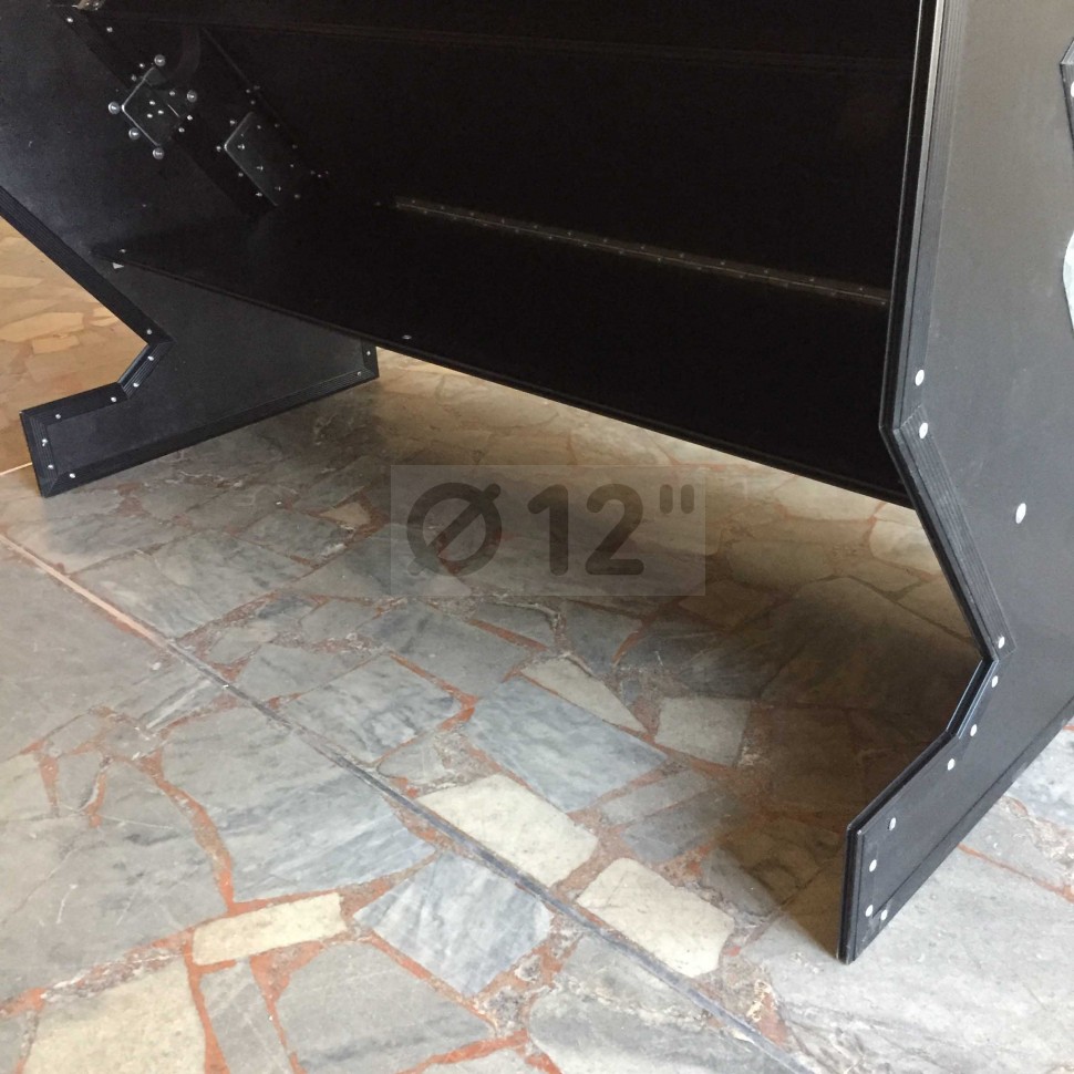 Материал: фанера толщиной 9 мм, ламинирована слоем пластика чёрного цвета. Габаритные размеры: столешница 1200x600 мм, высота 950, вес 25 кг. Цвет черный.