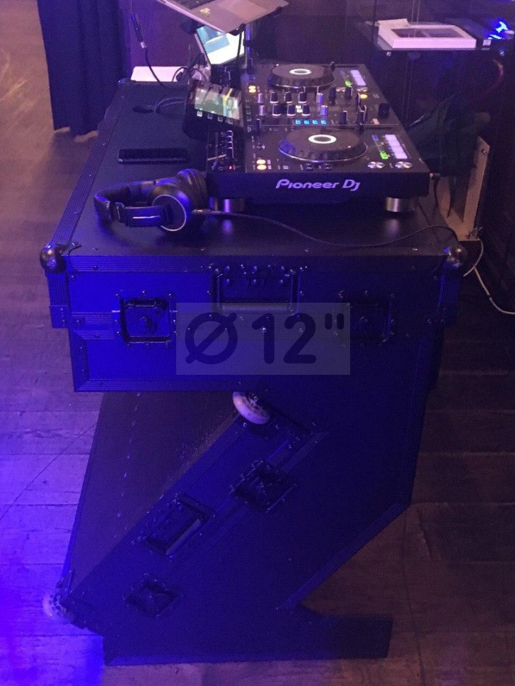 | Тип | Складной стол диджея для выездных мероприятий; с колёсиками и ручкой для переноса |