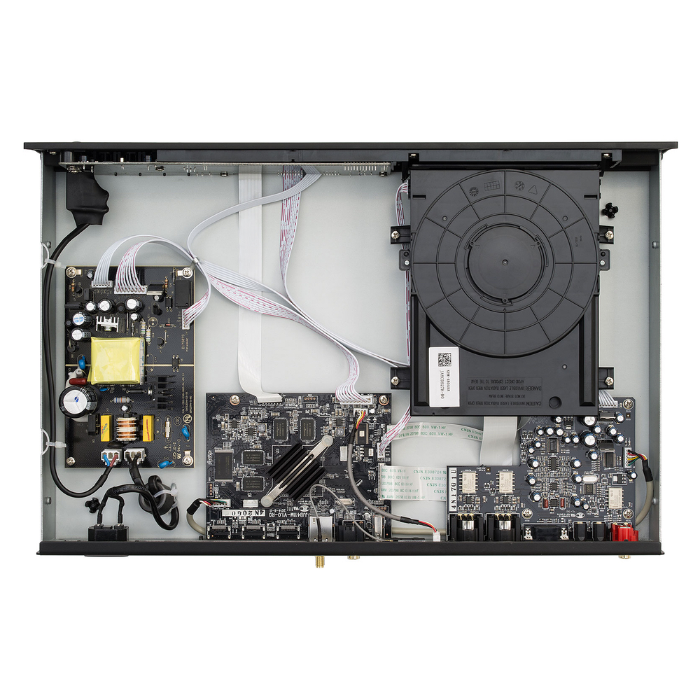 Передняя панель CDS27 оборудована основными органами управления, а также имеет цифровой информативный дисплей, который отображает режим работы номер трека. На задней панели проигрывателя расположены два балансных выхода XLR, два небалансных RCA и два цифровых выхода Coaxial и Optical. Для подключения к локальной сети имеется традиционный порт RJ45, а для удаленного управления используется порт RS232. Дополнительно имеется два входа mini-Jack для внешнего Remote-контроллера и гнездо для подключения внешней антенны Wi-Fi. Плюс ко всему, проигрыватель выполнен в стильном, современном дизайне черного цвета.