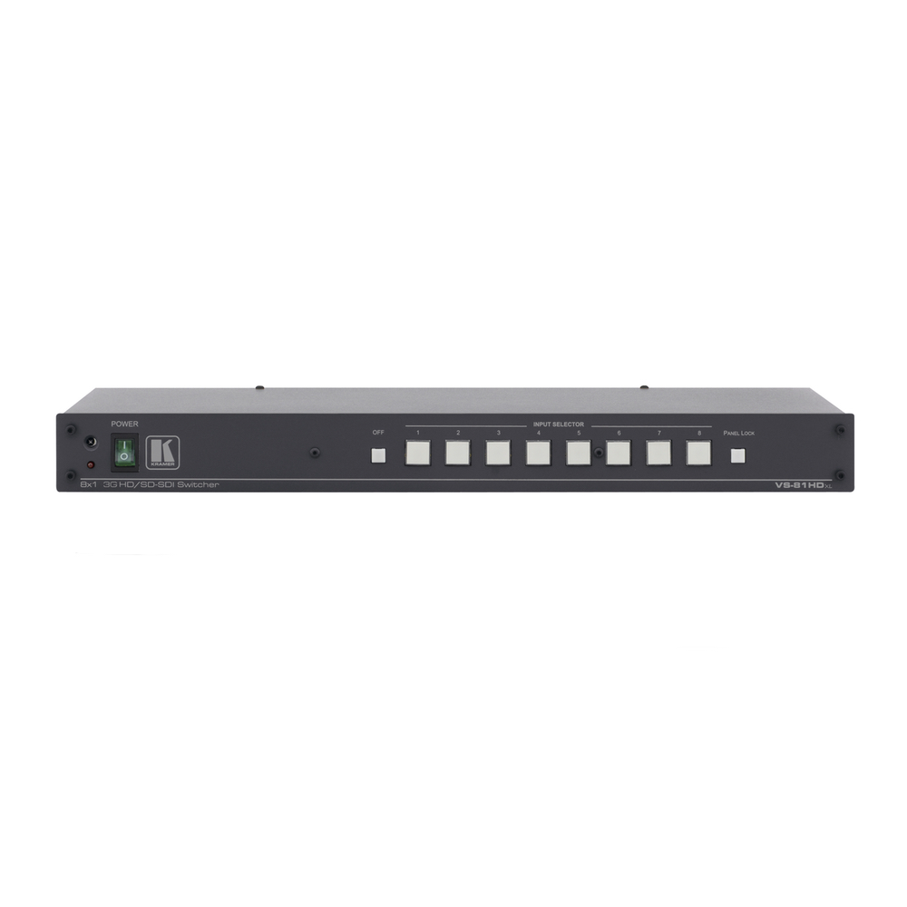 Kramer VS-81HDXL - представляет собой высококачественный 8-канальный видео коммутатор (свитчер), работающий с SDI, HD-SDI и 3G HD-SDI сигналами. Данный прибор позволяет подключить до 8 видеоисточников, и с помощью селектора каналов выбрать тот, который пойдет на выход. Управление прибором может осуществляться непосредственно с панели управления, удаленно с компьютера через порт RS-232, удаленно по сети интернет, а так же с пульта ДУ, который входит в комплект. Дополнительно устройство имеет функцию блокировки клавиш и поддерживает совместимость с HDTV.