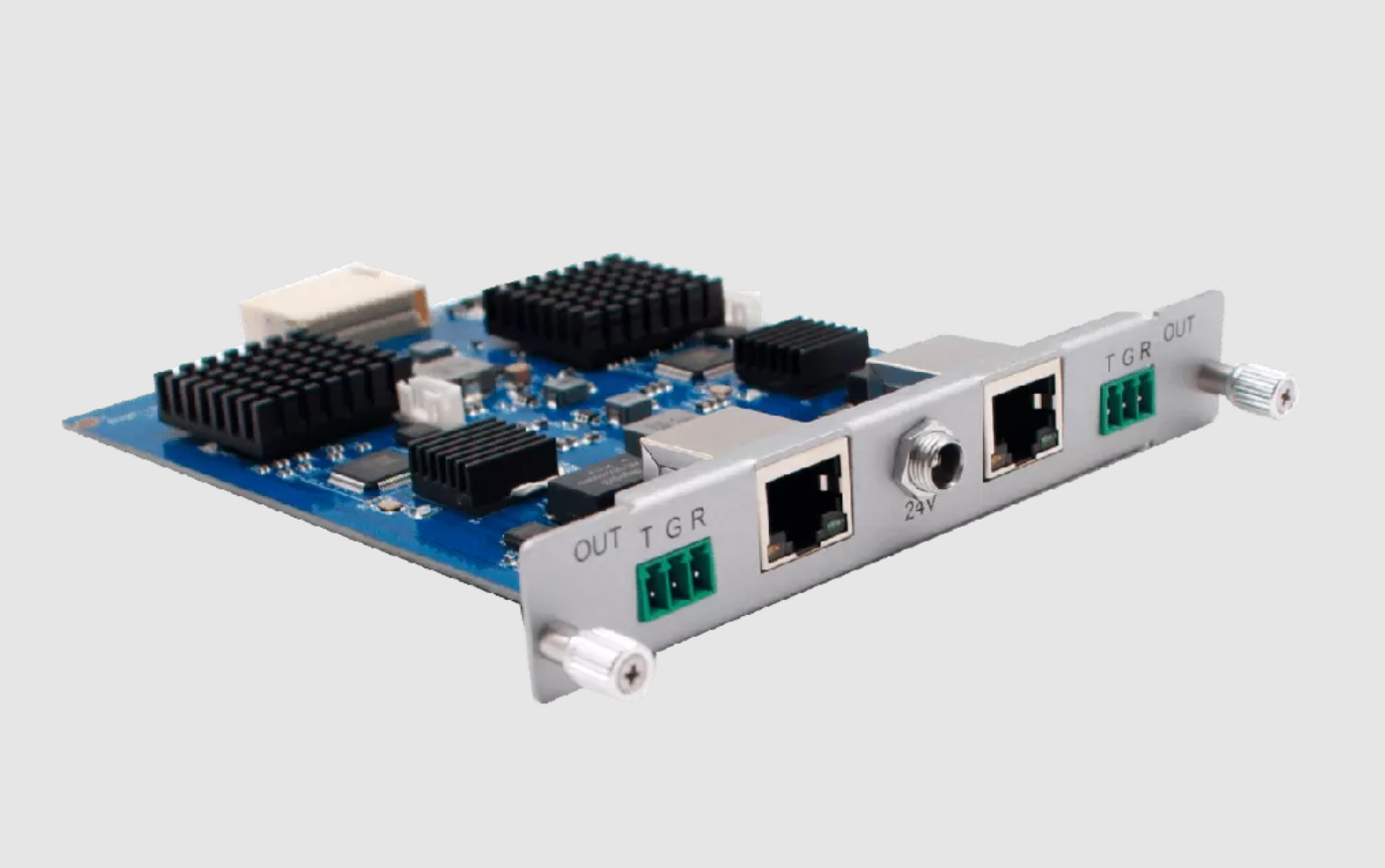 AVCLINK MC-UHB-2OUT - представляет собой плату расширения для шасси модульного коммутатора AVCLINK серии MC (MC-0808, MC-1616, MC-3636, MC-8080). Модуль рассчитан на работу с высококлассными цифровыми видеосигналами формата HDbaseT и оснащён двумя (2) сетевыми выходами RJ45, а также двумя (2) трёхконтактными выходными разъёмами RS232.