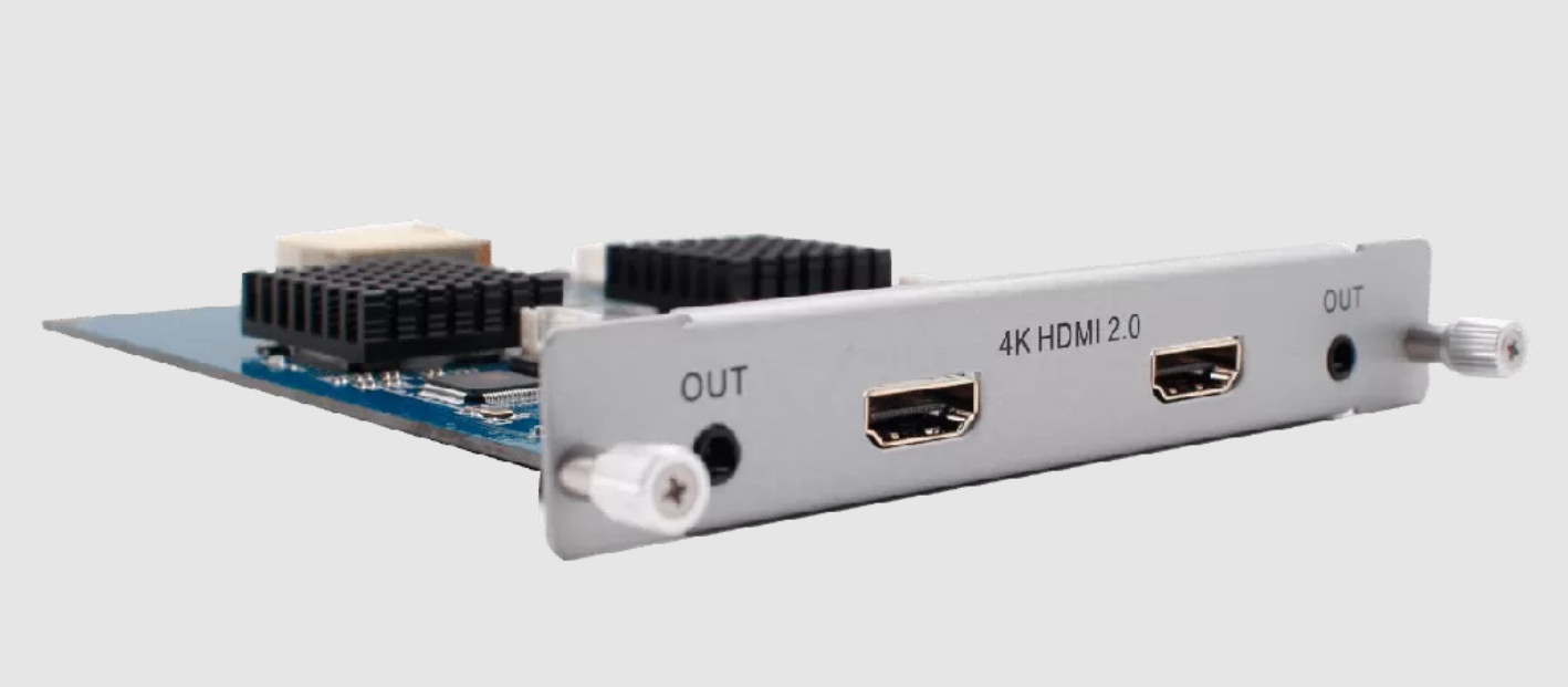 AVCLINK MC-UHD-2OUT - представляет собой плату расширения для шасси модульного коммутатора AVCLINK серии MC (MC-0808, MC-1616, MC-3636, MC-8080). Модуль рассчитан на работу с высококлассными цифровыми видеосигналами формата HDMI (стандарт 2.0) и оснащён двумя (2) соответствующими выходами. Также предусмотрены два (2) аналоговых аудиовыхода на разъёмах стерео mini-Jack 3,5 мм.