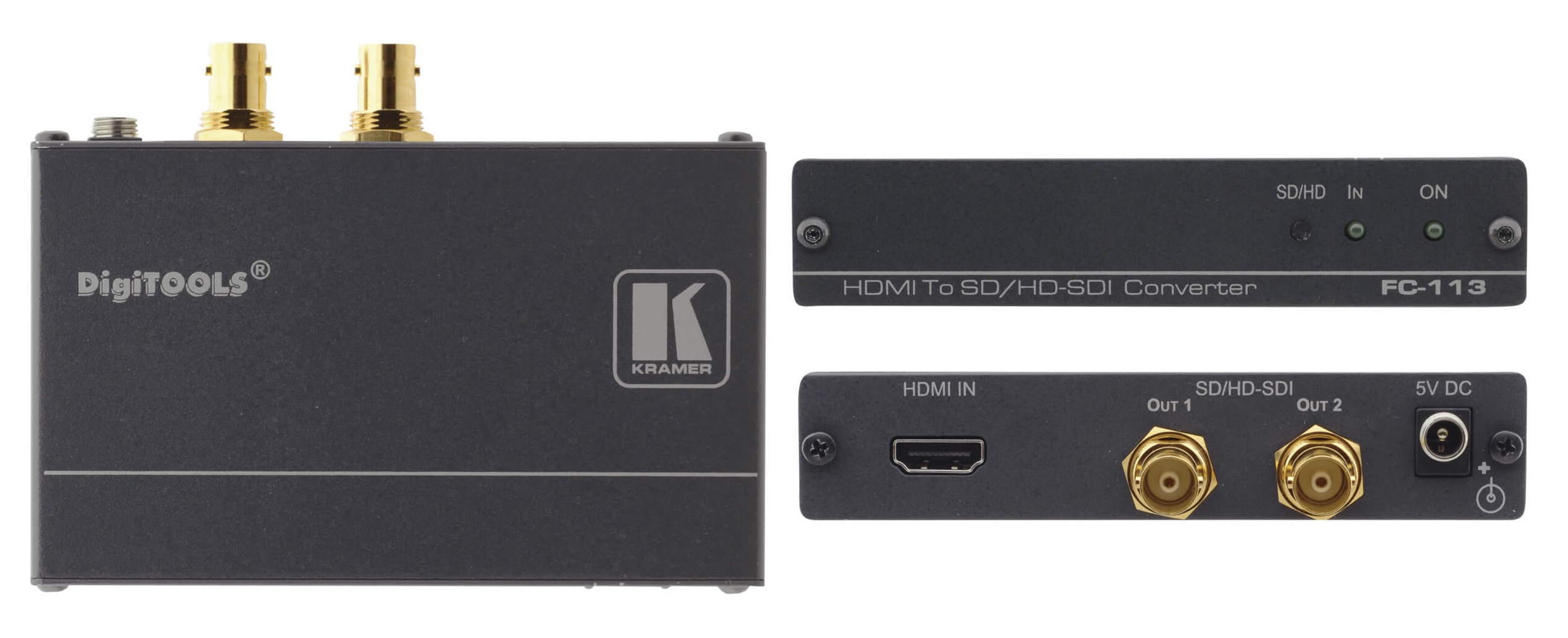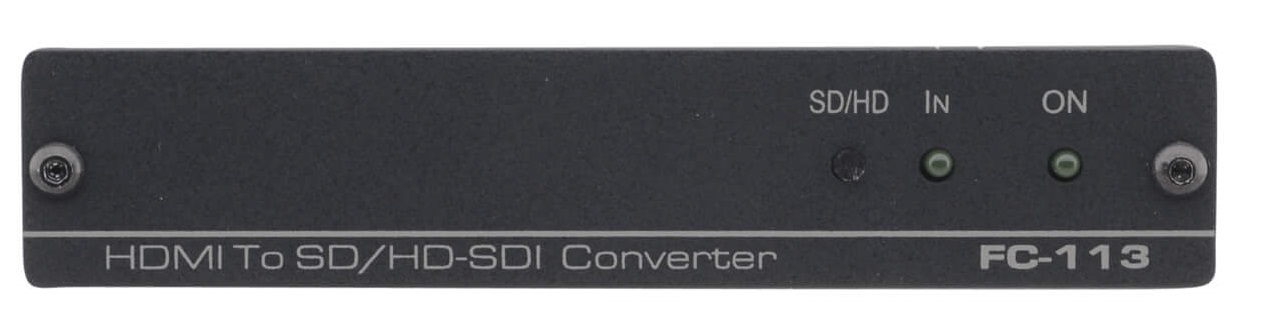 KRAMER FC-113 – компактный преобразователь / конвертер HDMI сигнала. Позволяет разделить HDMI на два SDI выхода. Автоматический много-стандартный режим позволяет получить сигналы SD/HD/3G HD-SDI. Специальное крепление RK-3T позволяет установить конвертер в рэк (покупается отдельно). Сферой применения преобразователя FC-113 от KRAMER является любая система проекции, где требуется подключение на BNC разъемах. Также доступна специальная версия для медицинских помещений FC-113-MD.