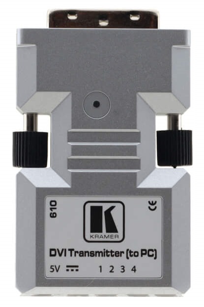 Миниатюрный передатчик KRAMER 610T в паре с совместимым приемником 610R позволяют организовать эффективную систему передачи DVI сигнала на удаленные расстояния по оптоволоконному кабелю. Эти миниатюрные устройства подключаются непосредственно к DVI разъемам оборудования и обеспечивают передачу данных со скоростью 4,95 Гбит/с на расстояние до 500 м. В качестве линии связи применяется многомодовый кабель с 4 симплексными или 2 дуплексными LC-разъемами. Для наилучшего результата рекомендовано использование кабелей C-4LC/4LC от Kramer.