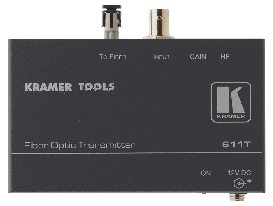 Передатчик Kramer 611T в паре с совместимым приемником 611R позволяют организовать эффективную систему передачи композитного видеосигнала на удаленные расстояния по оптоволоконному кабелю. Система работает исключительно с многомодовым кабелем, максимальная протяженность которого может достигать 5 км. Кроме того, оба устройства оборудованы регуляторами для компенсации АЧХ кабеля и настройки уровня сигнала, позволяющими оптимизировать сигнал для передачи на дальние расстояния, а также информативным светодиодным индикатором. Выпускается передатчик в корпусе малых габаритов Kramer TOOLS™, питание получает от внешнего источника через блок питания 12 В DC.