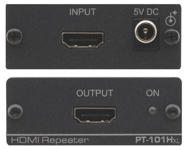 KRAMER PT-101HXL – высокопроизводительный HDMI репитер, позволяющий увеличить расстояние между источником сигнала и дисплеем до 15 м при разрешении сигналов 1080p. Выпускается устройство в корпусе малых габаритов Pico TOOLS™, питание получает от интерфейса HDMI или через блок питания 5 В DC (в комплекте) от внешнего источника.