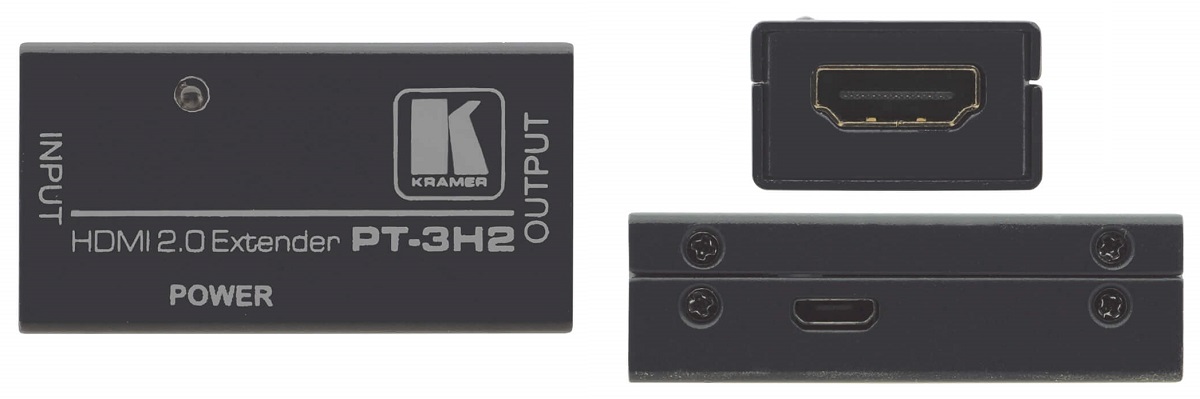 KRAMER PT-3H2 – миниатюрный HDMI повторитель, позволяющий значительно увеличить протяженность кабельных трасс для передачи HDMI сигнала. PT-3H2 поддерживает Ultra HD (4K) и развивает скорость передачи данных до 18 Гбит/с. Производится в миниатюрном корпусе, питание получает от опционального источника, подключенного через microUSB.