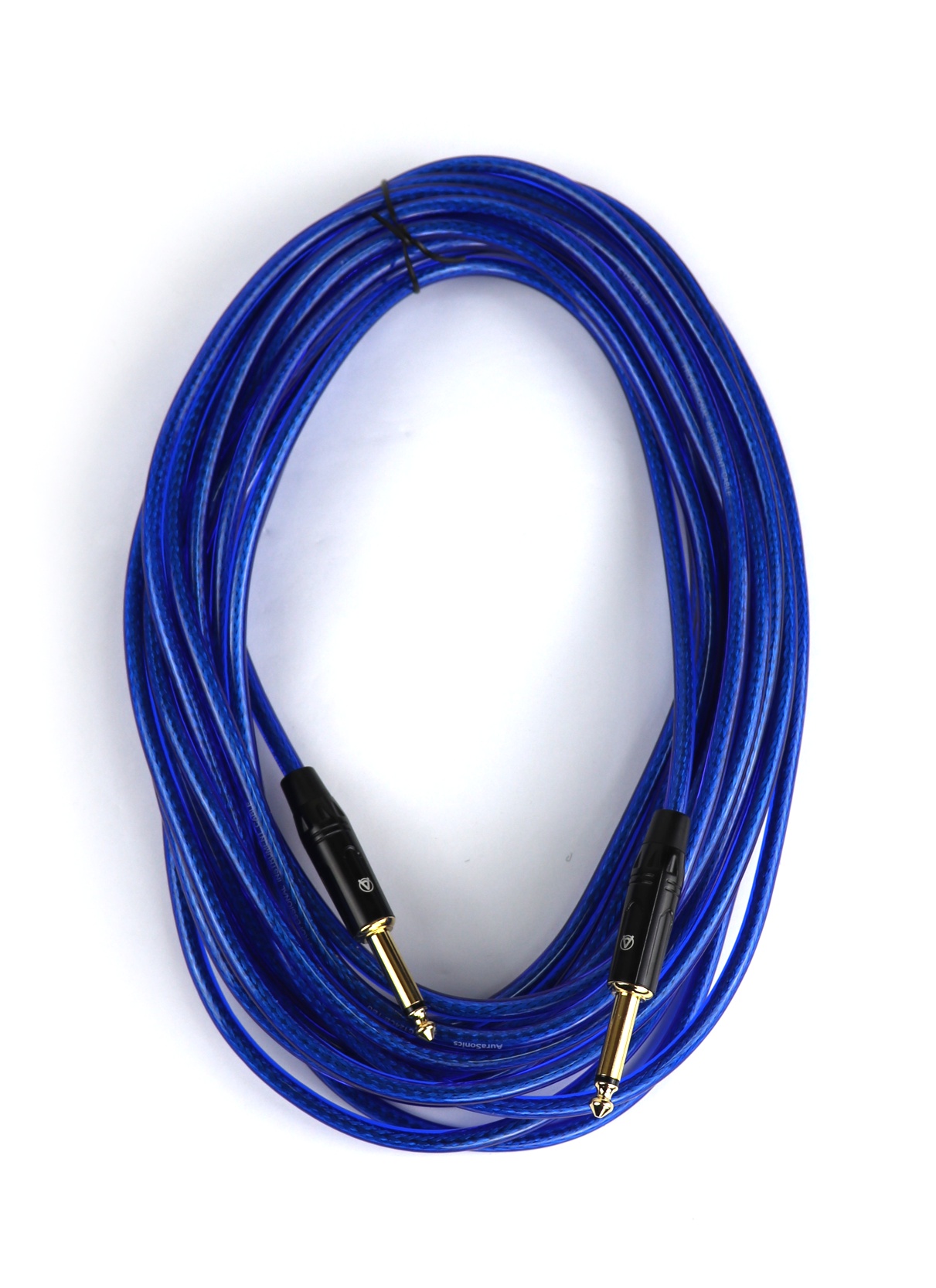 Разъемы - Jack TS 6.3мм <-> Jack TS 6.3мм. Круглое сечение площадью 0.22 мм² (AWG 24). Длина 10 метров. Синий цвет.
