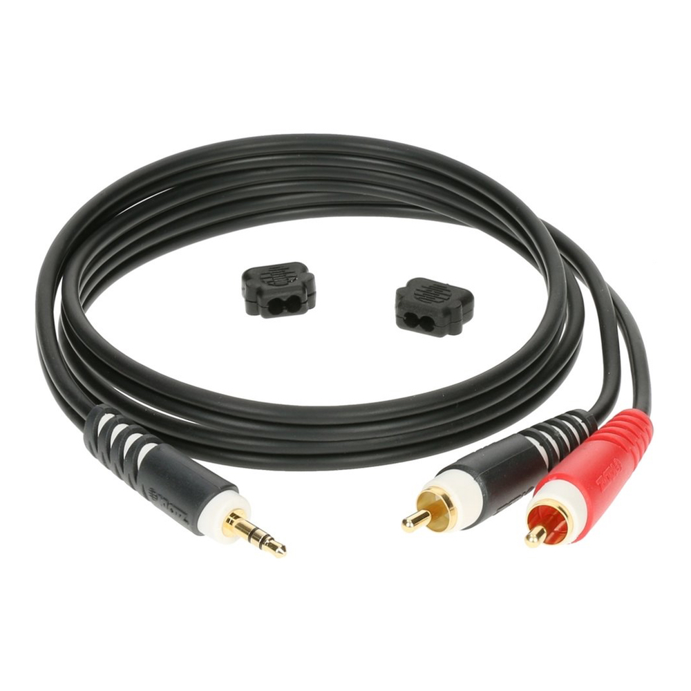 KLOTZ AY7-0200 - это сдвоенный межблочный кабель 2 x RCA / mini-Jack с позолоченными контактами, длиной 2 метра, черного цвета.