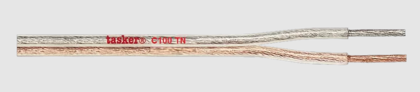 TASKER C100 TN - это высококачественный аудиокабель, который используется для подключения аналоговой акустики разного назначения: громкоговорители фонового вещания или оповещения, акустические системы в составе домашних кинотеатров (в том числе Hi Fi класса), автомобильный звук и т.д. Специальная уплощённая форма упрощает прокладку кабеля под напольными покрытиями.