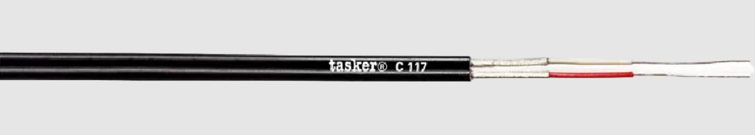 TASKER C117 - это ультратонкий сдвоенный аналоговый акустический кабель. Применяется в системах звукофикации для передачи сигналов линейного уровня или для подключения наушников.