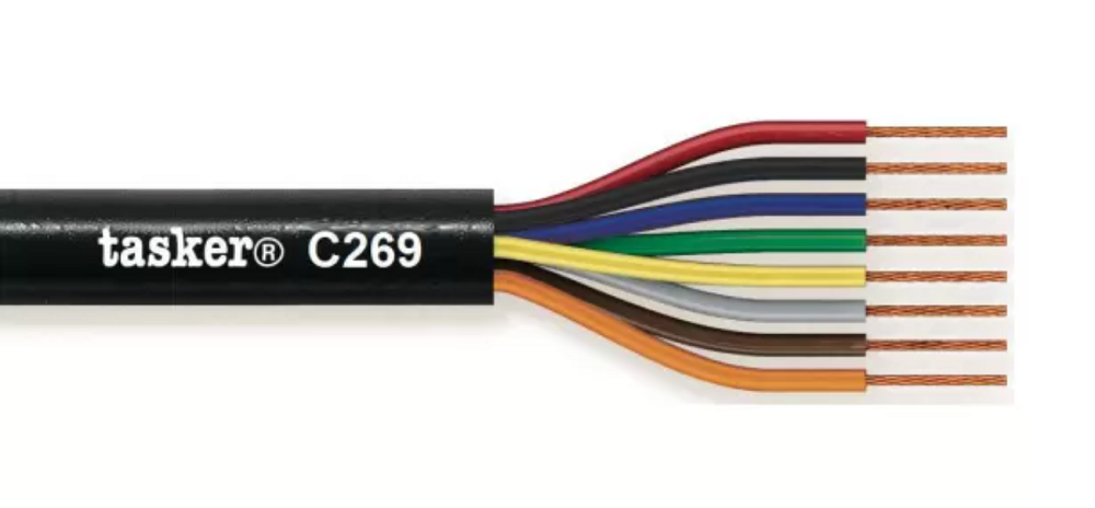 TASKER C269-BLACK - это круглый профессиональный аудиокабель, который используется для подключения аналоговой пассивной акустики различного назначения, в том числе Hi-Fi класса по схеме bi-wiring. Адаптирован под применение с разъёмами типа Speakon.