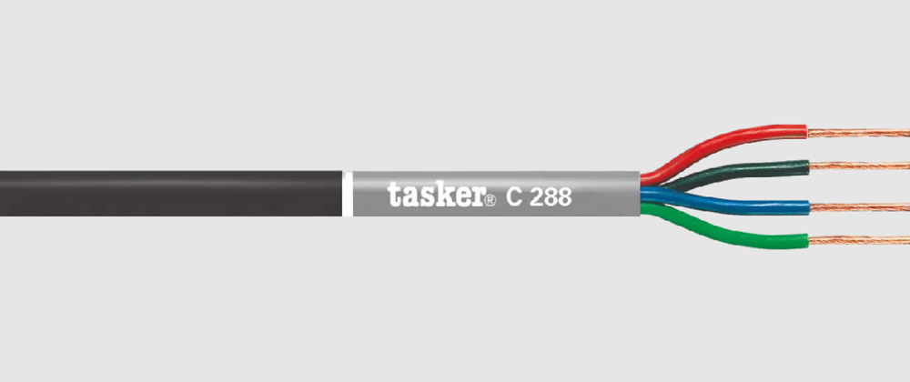 TASKER C288-BLACK - это круглый профессиональный аудиокабель (квадро), который используется для подключения аналоговой пассивной акустики различного назначения, в том числе Hi-Fi класса по схеме bi-wiring. Адаптирован под применение с разъёмами типа Speakon.