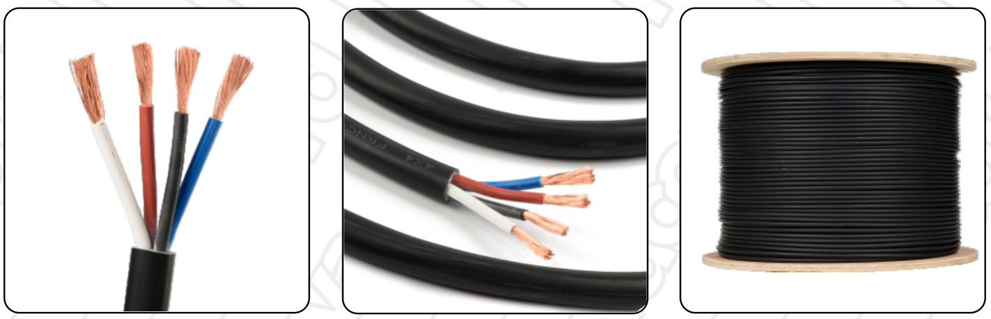 Изоляция проводников выполнена из PVC (поливинилхлорид) красного, черного, белого и синего цветов, а гибкая оболочка из PVC черного цвета. Не распространяет горение, соответствует требования пожарной безопасности IEC 60332-1. Поставляется в бухте.