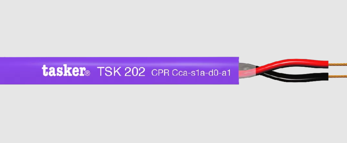 TASKER TSK 202 - это высококачественный круглый аудиокабель имеющий внешнюю оболочку из специального полимерного материала L.S.Z.H. (качество M1). Разработан для подключения аналоговых пассивных акустических систем, используемых в составе СОУЭ (системы оповещения и управления эвакуацией). Сертификация CPR Cca- S1a-d0-a1; соответствует стандартам: RoHS2 2011/65/UE, EN50200 (PH120), CEI 20-105 V1, UNI 9795, CEI 60332-2-25, 305/2011 UE.