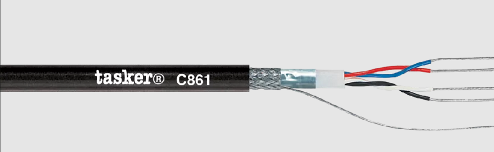 TASKER C861 PVC - это высококачественный профессиональный цифровой кабель для передачи цифровых сигналов DMX и AES/EBU, подходит для разъемов типа XLR. Волновое сопротивление 110 Ом. Внешняя оболочка из огнестойкого ПВХ, который не распространяет горение (FirestoP). Благодаря оболочке кабель подходит для прокладывания в публичных местах. Сечение кабеля 2 × 2 × 0.35 мм².