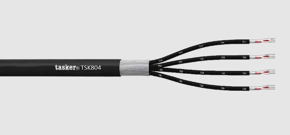 TASKER TSK 804 - это высококачественный симметричный цифровой акустический кабель адаптированный для работы с разъемами типа XLR и mini-XLR. Применяется в профессиональных системах звукофикации для передачи цифровых сигналов AES/EBU по четырем (4) каналам. Волновое сопротивление 110 Ом. Сечение кабеля 4 × 2 × 0.14 мм².