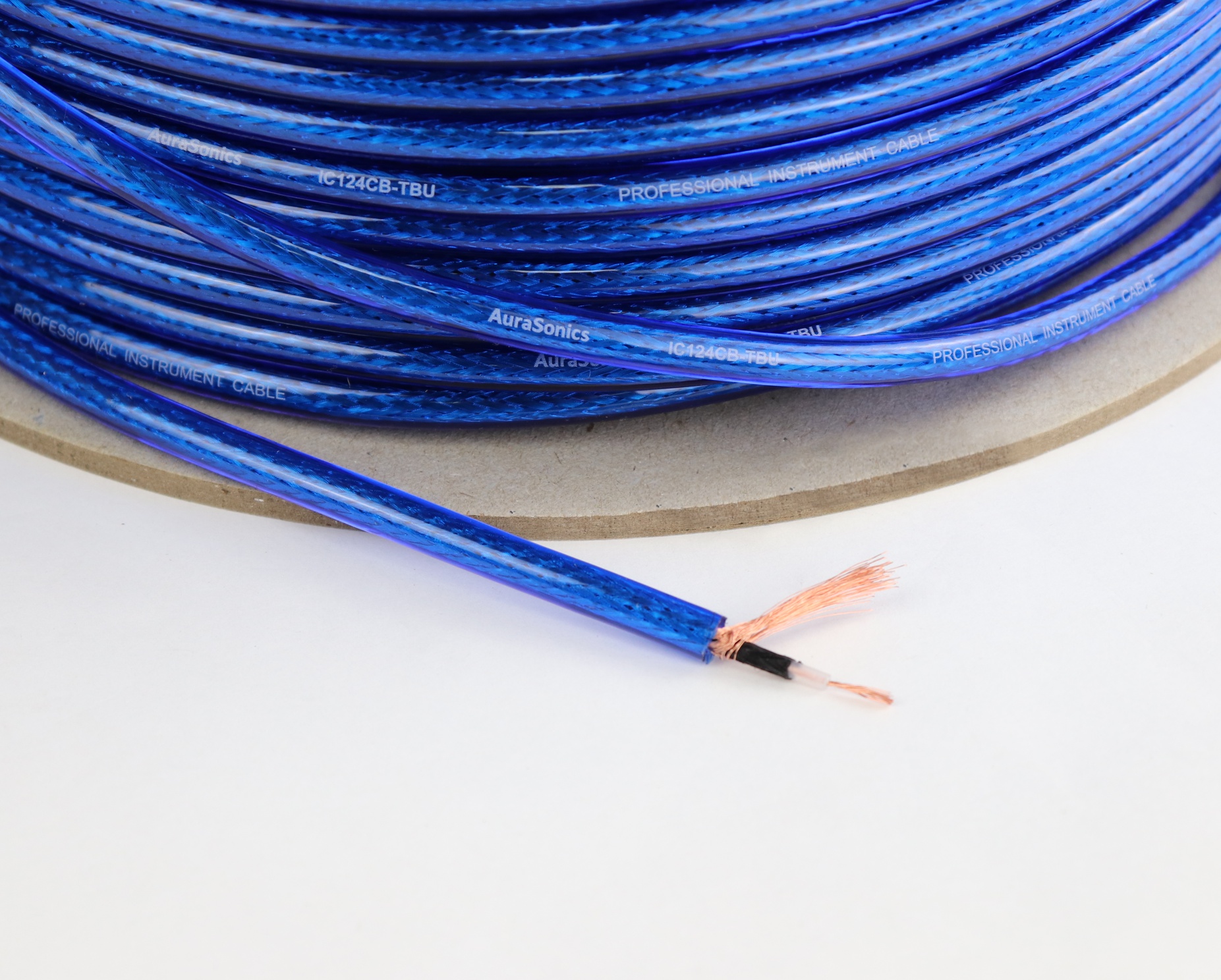 AURASONICS IC124CB-TBU - высококачественный инструментальный кабель с одним (1) многожильным медным проводником со структурой 28 x 0.12 мм. Круглое сечение 0.22 мм² (AWG24), общий диаметр 6 мм. Предназначен для распайки инструментальных или межблочных несимметричных кабелей. Эксплуатация: в студиях, репетиционных, концертных и презентационных залах и т.д.