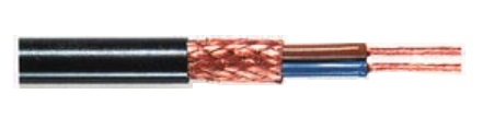 Структура кабеля. Два (2) многожильных проводника из красной меди типа OFC (бескислородная, 99.99% очистки; 11 жил толщиной по 0.2 мм) в изоляции из гибкого огнестойкого ПВХ (CPR, Ø 1.6 мм) разных цветов согласно маркировке по стандартам DIN 47100. Проводники помещены в общий экран, которым выступает оплетка из красной меди OFC 85% площади. Внешняя оболочка, как уже указывалось, из гибкого огнестойкого ПВХ (CPR), Ø 5.4 мм. Черный цвет.