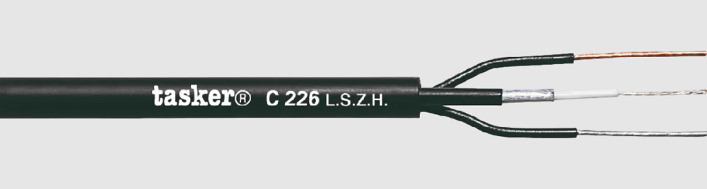 TASKER C226 L.S.Z.H. — это высококлассный профессиональный комбинированный кабель, предназначенный для передачи видеосигналов с одновременным питанием подключенных видеокамер. Прекрасно подходит для монтажа охранных систем визуального наблюдения. Волновое сопротивление 75 Ом. Внешняя оболочка из специального материала L.S.Z.H.: не содержит галогенов, не распространяет горение (FirestoP и Halogen Free) и практически не дымит. Благодаря оболочке кабель подходит для прокладывания в публичных местах и на улице.