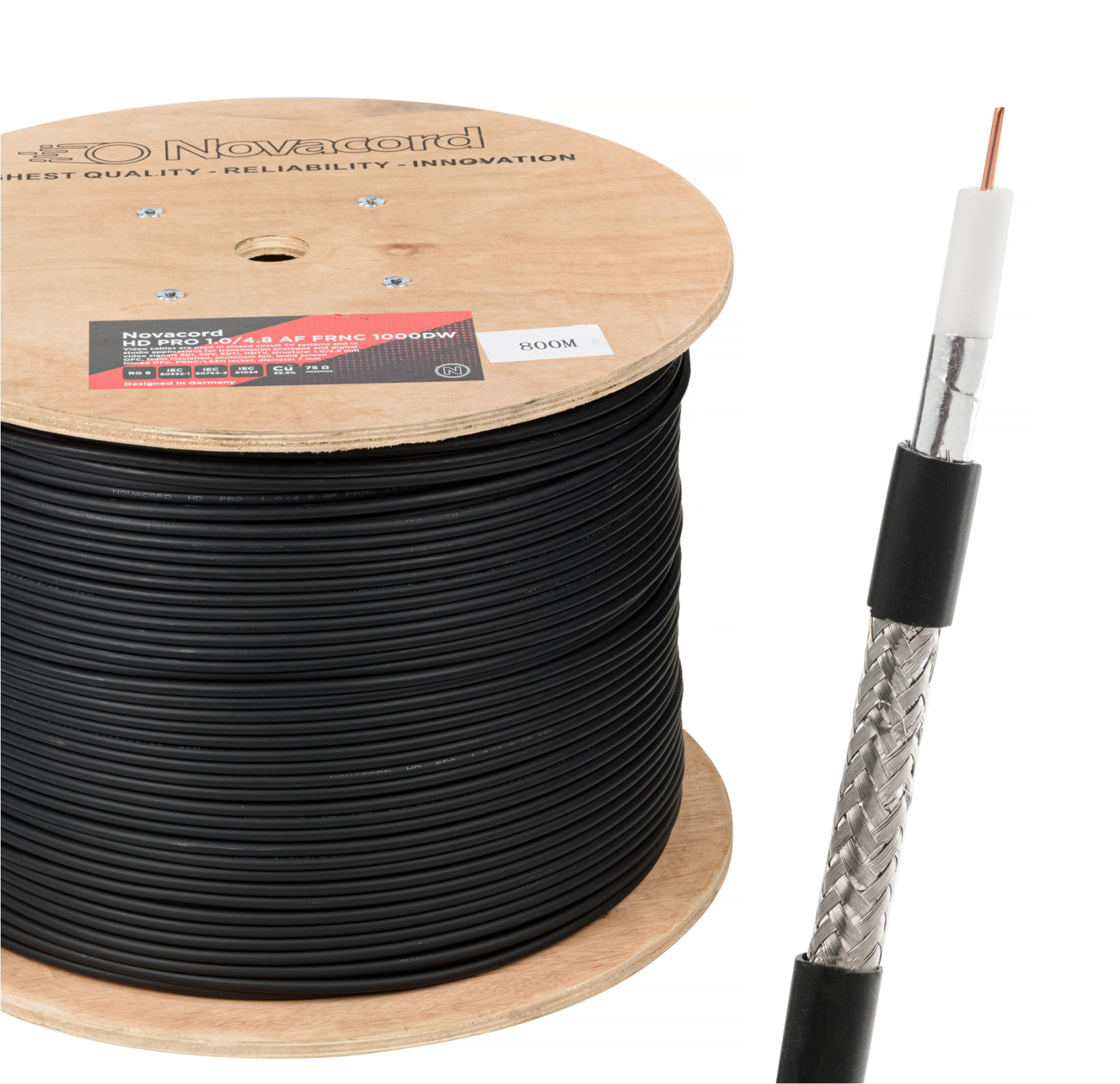 NOVACORD HD PRO 1.0/4.8AF FRNC - это огнестойкий коаксиальный кабель, тип RG6. Передаёт цифровые и аналоговые видеосигналы: композитные, компонентные, SDI, SDV, SDTI, HDTV. Используется с различными разъёмами в телевизионных и других системах требующих трансляции изображения на расстояние. Максимальная дальность передачи данных составляет (длина линии) = 415 м. Более подробно смотрите соответствующую таблицу в файлах.