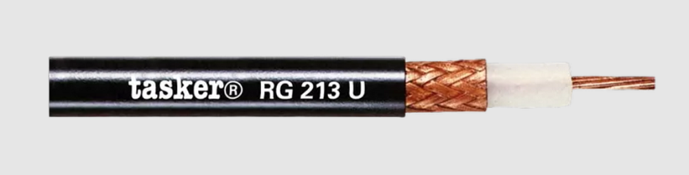 TASKER RG 213 U — это высококачественный профессиональный коаксиальный кабель предназначенный для передачи радиочастотных сигналов и питания передающих антенн. Волновое сопротивление 50 Ом.