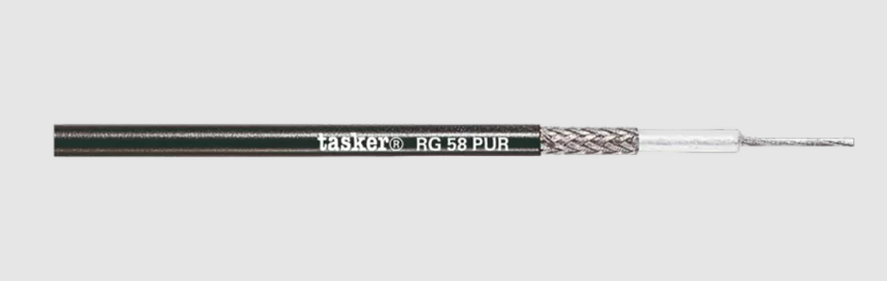 TASKER RG 58 PUR — это высококачественный профессиональный коаксиальный кабель, предназначенный для передачи радиочастотных сигналов (антенные, сетевые). Волновое сопротивление 50 Ом. Внешняя оболочке из полиуретана: материал не содержит галогенов, не распространяет горение (FirestoP и Halogen Free), устойчив к воздействию воды, ультрафиолетового излучения, химически активных элементов и различных масел. Благодаря оболочке кабель подходит для прокладывания на улице или помещениях с тяжелыми условиями эксплуатации.