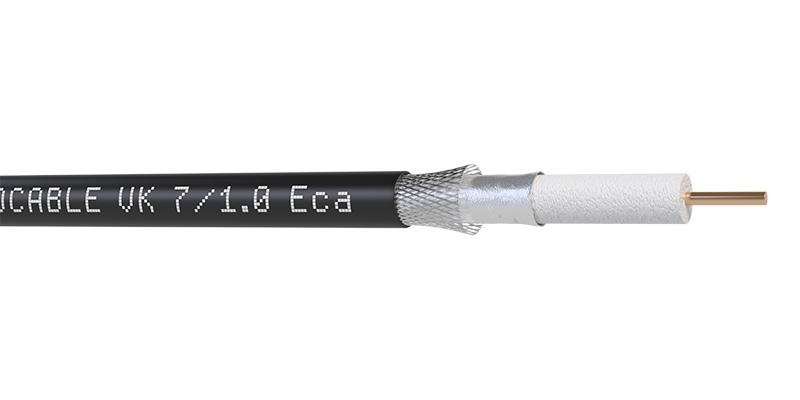Один проводник, цельная проволока толщиной 1.0 мм из красной бескислородной меди OFC (степень очистки 99,97%), помещен в изоляцию из высокоплотного плёнко-пористо-пленочного полиэтилена (Skin-Foam-Skin HDPE) диаметром 4.57 мм. Тройной экран состоит из следующих слоев: №1 - алюмополиэстерная фольга (AL/PT/Al, 100% площади), №2 - алюминиевая оплетка (80% площади), №3 - алюмополиэстерная фольга (AL/PT/Al, 100%). Внешняя оболочка из гибкого ПВХ, диаметр кабеля 7 мм. Черный цвет.