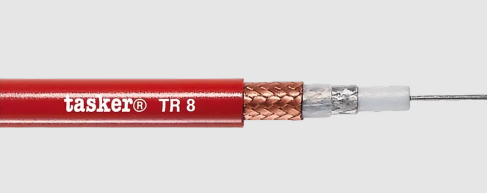 TASKER TR 8 — это высококачественный триаксиальный кабель, предназначенный для передачи видеосигналов или подключения профессионального видео оборудования на телестудиях. Волновое сопротивление 75 Ом. Внешняя оболочке из материала L.S.Z.H.: не содержит галогенов и не распространяет горение (FirestoP и Halogen Free). Благодаря оболочке кабель подходит для прокладывания в публичных местах.