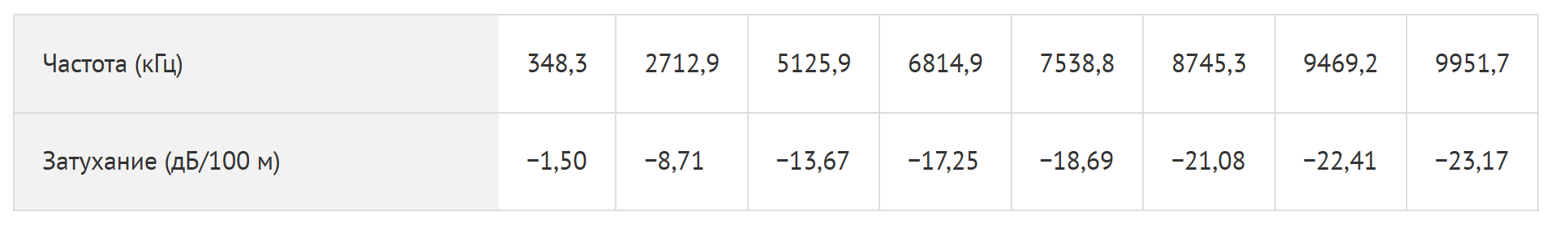 Погонное сопротивление = 93.3 Ом/км; емкость: жила/жила 73.4 пФ/м, жила/экран 145,9 пФ/м (1 кГц); индуктивность проводника 0.2 мкГн/м. Рабочие температуры от -20° до +75°С.