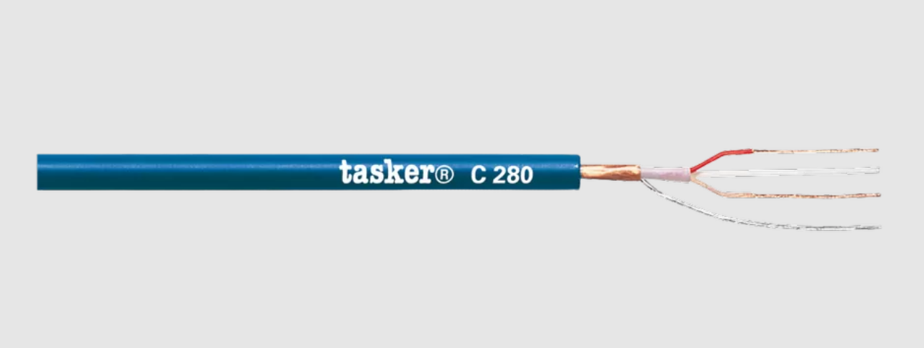 TASKER C280 - это высококачественный профессиональный аналоговый микрофонный кабель с возможностью распайки разъемов типа XLR. Применяется в системах звукофикации для передачи балансных сигналов микрофонного или линейного уровня, а также небалансных стерео-сигналов. Высокая устойчивость к ЭМ-помехам.