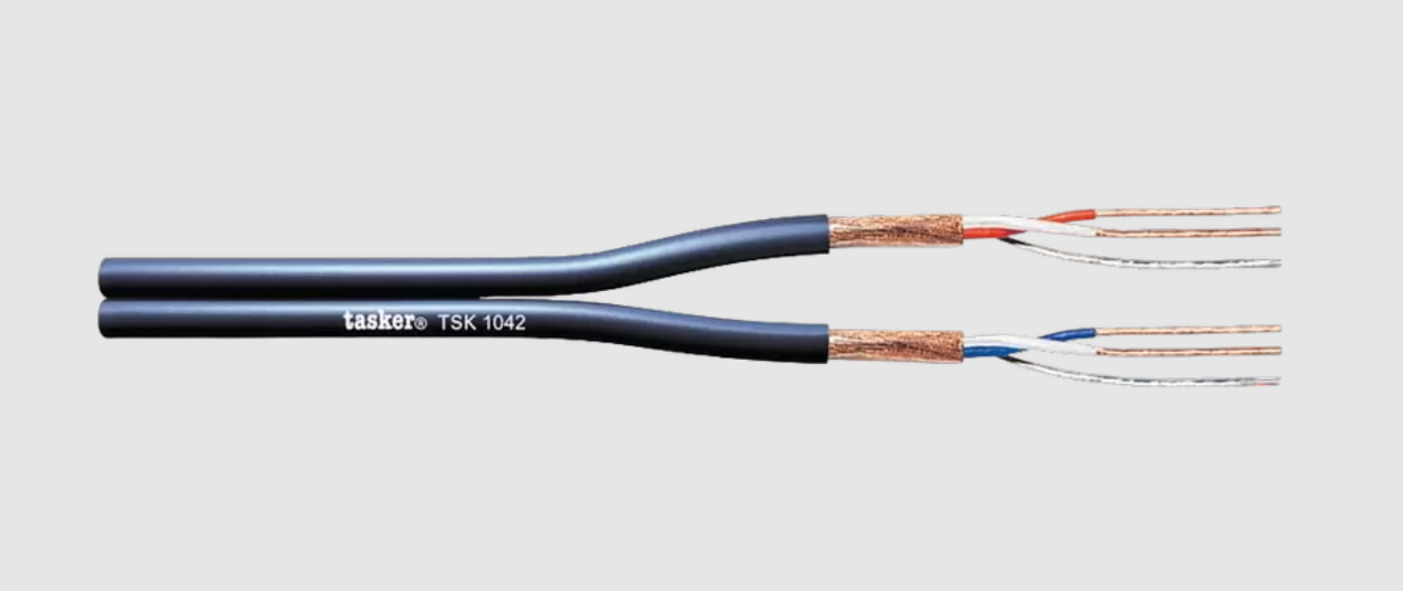 TASKER TSK1042 - это высококачественный сдвоенный профессиональный аналоговый микрофонный кабель с возможностью распайки разъемов типа XLR. Применяется в системах звукофикации для передачи балансных сигналов микрофонного или линейного уровня. Высокая устойчивость к ЭМ-помехам и эластичность.