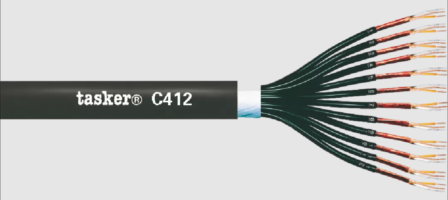 TASKER C412 - это высококачественный профессиональный аналоговый аудио кабель. Применяется в оборудовании для передачи балансных сигналов линейного уровня или небалансных стерео-сигналов. Используется в случаях, когда необходима одновременная трансляция нескольких (у данного кабеля до 24-х) звуковых сигналов. Высокая устойчивость к ЭМ-помехам.