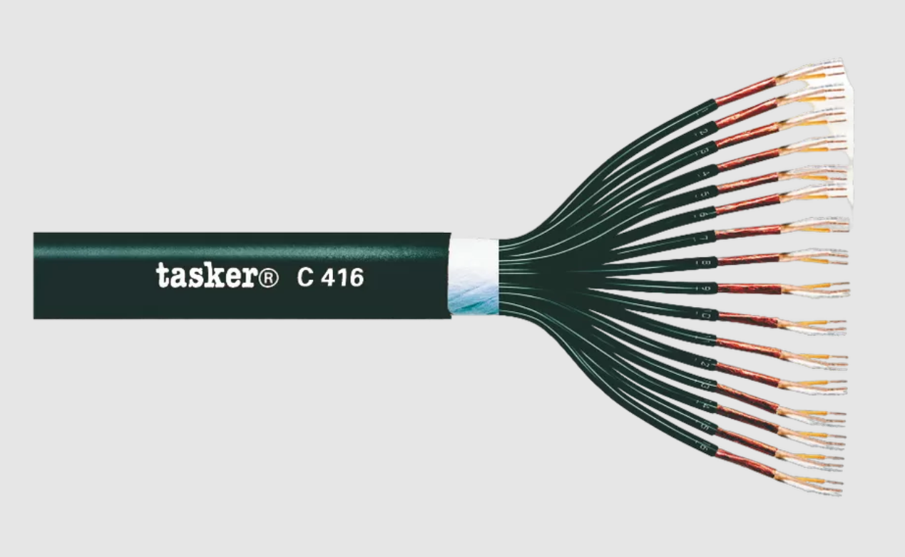 TASKER C424 - это высококачественный профессиональный аналоговый аудио кабель. Применяется в оборудовании для передачи балансных сигналов линейного уровня или небалансных стерео-сигналов. Используется в случаях, когда необходима одновременная трансляция нескольких (у данного кабеля до 48-и) звуковых сигналов. Высокая устойчивость к ЭМ-помехам.