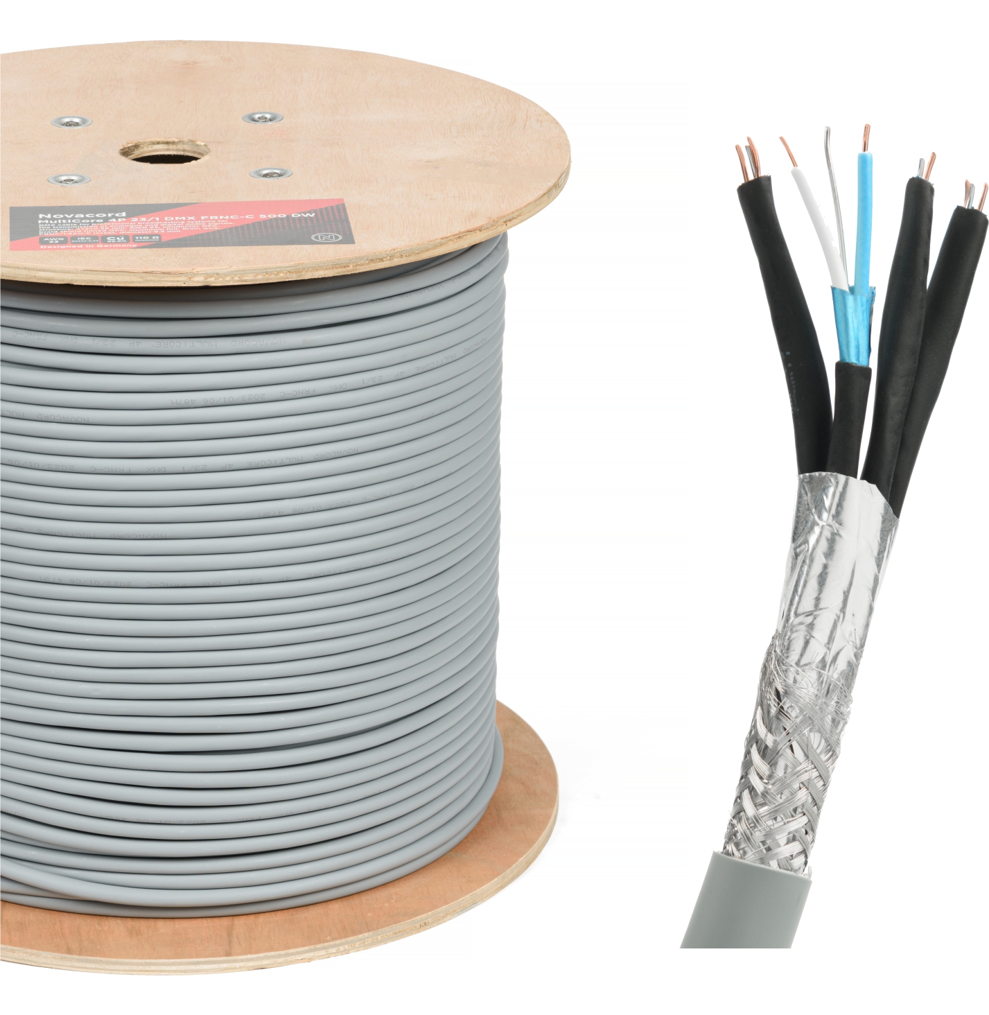 NOVACORD MultiCore 4P 23/1 DMX FRNC-C - это огнестойкий высококачественный цифровой аудио кабель стандарта AES/EBU по которому также можно передавать аналоговые акустические сигналы. Применяется в оборудовании для звукозаписи, усиления, трансляции и обработки звука, когда необходима одновременная трансляция нескольких (у данного кабеля 8) звуковых сигналов. Высокая устойчивость к ЭМ-помехам.