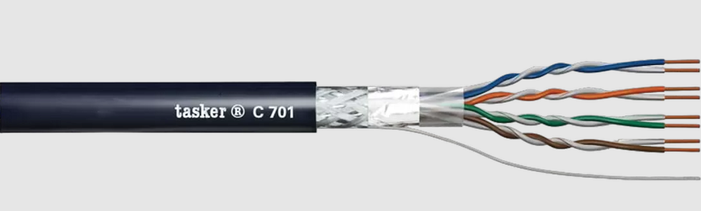 TASKER C701 — это высококачественный цифровой LAN-кабель S.F. / UTP CAT5E под распайку с разъемами RJ-45 8-pin и другими (EIA/TIA 568-совместимость).