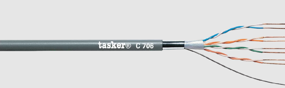 TASKER C706 — это высококачественный цифровой LAN-кабель F. / UTP CAT5E под распайку с разъемами RJ-45 8-pin.