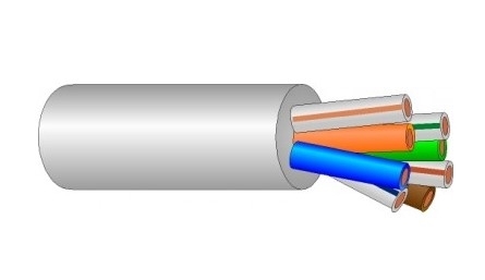 Общей внешней оболочкой выступает, как уже указывалось, гибкий полимер FRLSHF, диаметр кабеля 7.8 мм. Серый цвет. Рабочие температуры от -30° до +70°С.
