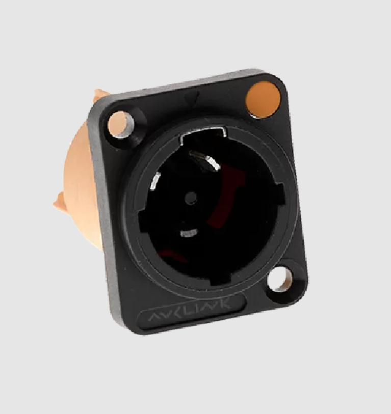 AVCLINK AC3MPX-TOP - это высококачественный панельный разъем TRUE1 типа PowerCon оснащённый тремя (3) позолоченными контактами - фаза, нейтраль и заземление. Штекер (male или "папа").