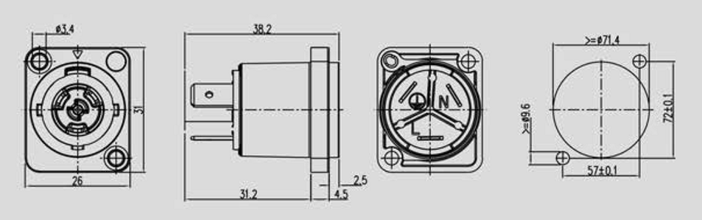 Используется для питания звукового оборудования: пассивные акустические системы, усилители и т.п. Индивидуальная установка, контакты под пайку. Материал корпуса полиамид черно-оранжевого цвета, влагозащищенный (IP65, есть защитная крышка), расчетное количество рабочих циклов (соединить/рассоединить) составляет не менее 1000. Фланец типа D. Можно подключать/отключать под напряжением.