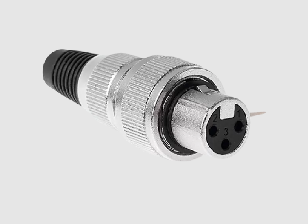 AVCLINK C3FX-SPEC - это акустический разъем XLR с 3-мя посеребренными контактами (3-pin), гнездо (female или "мама"). Используется для распайки инструментальных или балансных межблочных акустических кабелей диаметром 3,5 - 8 мм. С блокировкой. Никель.